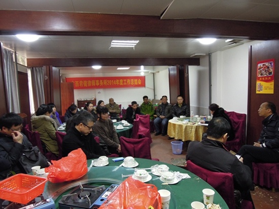 2015年2月6日,广西君健律师事务所在桂林市穿山公园召开了“2014年度工作总结会”,全所执业律师、实习律师和行政人员参加了此次会议。 会议由所副主任、党支部书记江凌主持,所主任黄丽娟对一年来事务所在管理和业务方面做了报告,并对15年的工作提供了要求和做法。 参会律师纷纷就自己一年来的执业情况及今后打算和发展方向作了介绍,同时对事务所如何更好的管理,提出了自己的看法和建议。