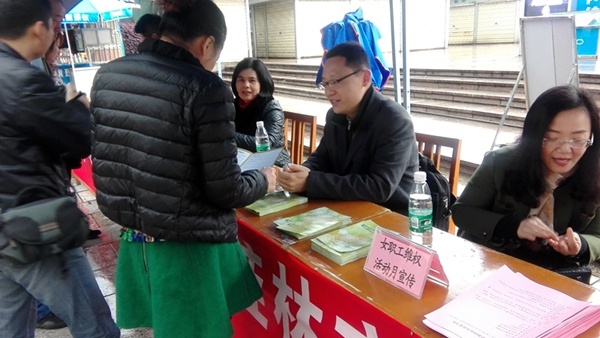 2016年3月22日,我所蒋贤杰律师应桂林市总工会的邀请,以桂林市总工会职工律师团律师身份参加了由桂林市总工会、桂林市秀峰区工会联合组织的“反对家庭暴力 构建和谐社会——桂林市女职工维权活动月”法制宣传活动。 活动现场,蒋贤杰律师就群众所关注的热点问题进行了解答,受到了咨询群众活动组织单位的肯定。 图为活动现场。