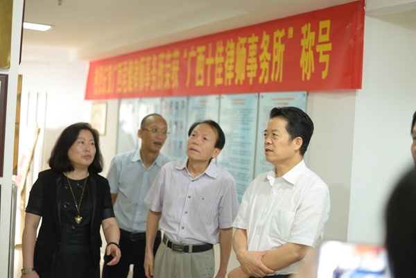 5月12日上午,自治区司法厅党委委员、副厅长、广西律师协会党组书记杜恒年在广西律师协会秘书长黄都恒、桂林市司法局局长肖刚、副局长秦昕的陪同下到我所进行工作视察,并与在所律师进行了座谈。 我所黄丽娟主任就事务所管理和业务发展等进行了汇报,党支部书记江凌就事务所的党建工作作了汇报。 杜副厅长认真的听取了工作汇报,并查看了事务所的办公环境,对我所的各项工作给予了充分肯定与认可,并就律师事务所的发展与管理提出了新的要求和建议。 合伙人黄如均、赵孟安、程进宝和其他律师一同参与了座谈。