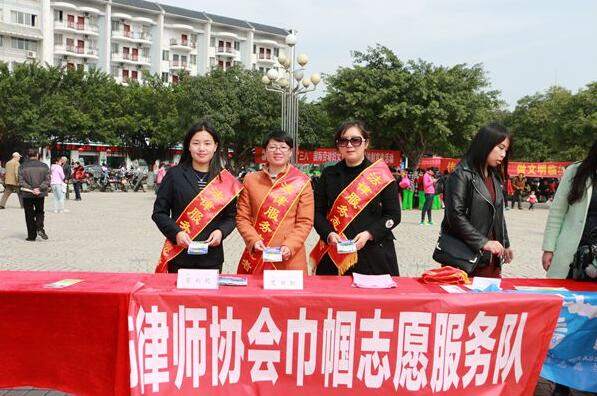 2017年3月2日,艾丽红、蒙刘艳律师参加了由桂林律师协会女律师工作委员会组织的在桂林市临桂区金山广场送法律、送政策、送文化、送技能、送健康、送温暖进社区活动。 据悉,此次活动是响应桂林市庆祝 “三八”国际劳动妇女节107周年“巾帼心向党 喜迎十九大”系列活动之“邻里守望·姐妹相助”桂林市巾帼“学雷锋”志愿服务“六送”活动 。 活动现场,律师向群众解答了她们所关注的问题,发放了宣传资料,受到与会人员的好评。