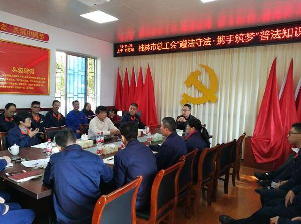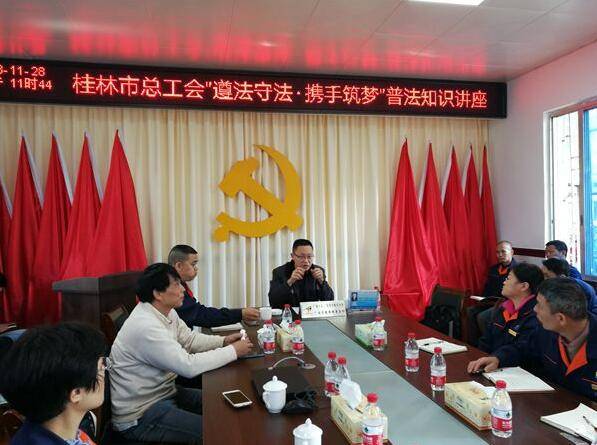 11月28日,蒋贤杰律师应桂林市总工会的邀请,前往桂林漓嘉金属有限责任公司开展法制宣传活动。 蒋贤杰律师就是涉及到职工本人工作,生活,学习相关的内容,以自已办过的案件,以案说法,比如购房消费纠纷,医患纠纷,婚姻继承,人身损害赔偿,交通事故赔偿等等。通过办案实例,宣讲相关法律法规,引导大家如何规避法律风险,掌握必要的法律知识和维权技巧,保护自己的合法权益不受损害。