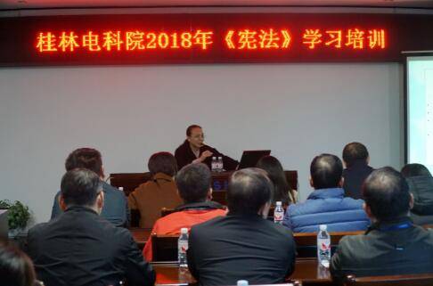 为弘扬宪法精神,帮助顾问单位领导干部深入学习宣传《中华人民共和国宪法》,2018年12月5日下午,广西君健律师事务所黄玉群律师受邀为顾问单位桂林电器科学研究院有限公司开展了《宪法》学习,该公司中层管理以上干部、法务人员等40余人参加了培训。 本次培训,黄律师以2018年最新修订的《宪法》修订内容为主导,从宪法的效力、作用、分类、发展历程、修订原因、主要内容等方面入手,结合2018年12·4第五个国家宪法日和首个宪法宣传周主题“尊崇宪法、学习宪法、遵守宪法、维护宪法、运用宪法”,进行了深入浅出讲解,对该公司参加培训人员全面准确地领会和把握第五次宪法修正案的精神实质具有很强的作用。