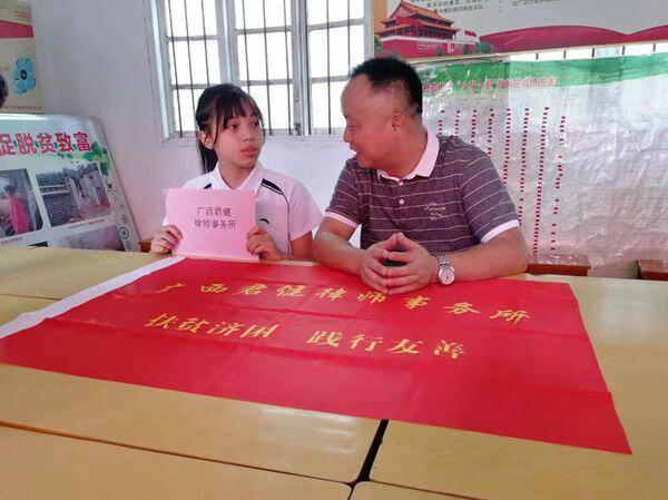 8月23日,受事务所黄丽娟主任及党支部的指派,侯永红带着全所律师的深情厚意,前往全州县凤凰镇参加了桂林市司法局、中共桂林市律师行业党委“党旗领航 助力脱贫献爱心”捐资助学活动,向贫困学生献出了爱心。 此次活动,由桂林市司法局董忠副局长亲自带队,市司法局律师管理科、中共桂林市律师行业委员会有关领导和律师同行共三十余人参加了此次活动。 此前,为庆祝中国共产党成立98周年之际,根据《中共广西壮族自治区律师行业委员会关于开展广西律师行业庆祝中国共产党成立98周年系列活动的通知》(桂律党[2019]14号)和桂林市非公经济组织和社会组织党工委、市司法局《关于开展“党旗领航·党员律师作表率活动的通知》(市司〔2018〕64号)精神,积极响应开展“我为庆祝党的生日做贡献·捐资助学”党员志愿服务活动,在黄丽娟主任的带领下积极踊跃捐款,共捐助2100元。