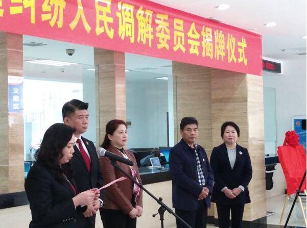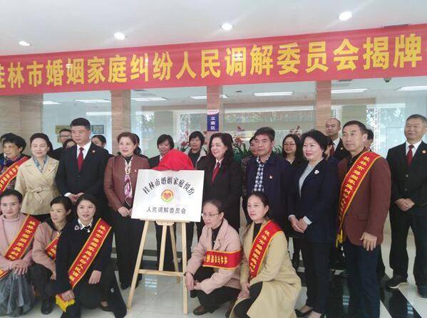 11月20日,在桂林市中级人民法院诉讼服务中心举行了桂林市婚姻家庭纠纷人民调解委员会(下称市婚调委)揭牌仪式。