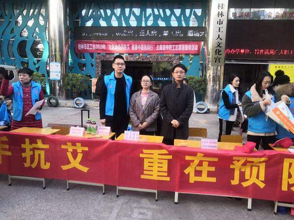 2019年12月10日上午,我所党支部组织委员卢自聪律师,应桂林市总工会的邀请,参加了在桂林市第二工人文化宫举行的“社区动员同防艾 健康中国我行动”主题活动,为人民群众提供免费法律咨询服务。