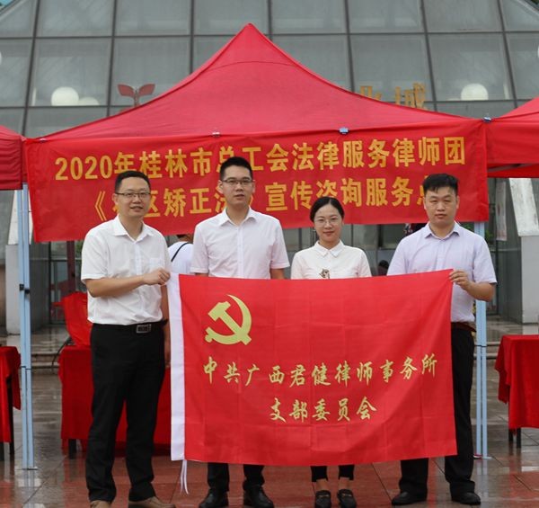 6月8日,我所蒋贤杰、卢自聪律师及实习律师廖鑫凯、秦洁参加了在桂林市中心广场举行的《社区矫正法》宣传活动。