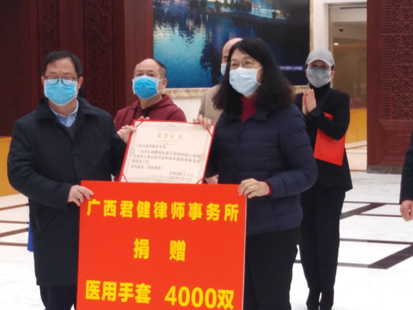 (2月19日,受黄丽娟主任的指派,合伙人赵孟安带着全所人员的抗疫热情和爱心,参加了桂林市政协在创业大厦组织的政协界别、委员、各界人士捐赠疫情防控物资仪式。) 疫情稍缓解,各行各业积极准备和开始复工复产之际,黄丽娟主任又带领我所律师先后到桂林市广陆数字测控有限公司、桂林市委党校、桂林市解东社区、临桂中学等单位,为企业、学校、社区和行政机关干部进行法治讲座和创城普法宣传。