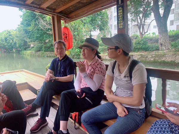 (黄丽娟主任(中)在灵渠游船上)