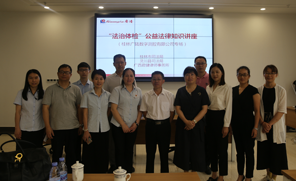 (6月12日,应桂林市司法局的邀请,黄丽娟主任前往桂林广陆数字测控有限公司开展“法治体检”公益法律活动,并作了《企业风险防范》专题讲座。)