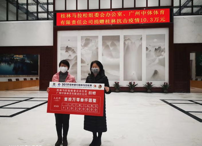 (2月7日,我所黄丽娟主任作为桂林市仁济慈善基金会该基金会副理事长兼秘书长代表基金会接受了桂林市马拉松组委会办公室、广州中体体育有限责任公司捐赠10.3万元。)