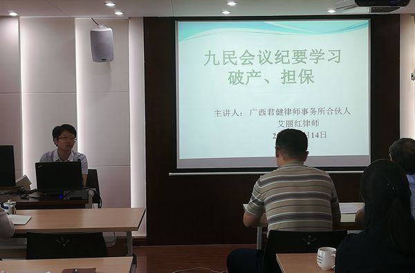 (艾丽红律师在讲课中) 合伙人艾丽红律师对《九民纪要》中的有关担保与破产法律知识做了解读和分享。