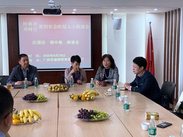 9月28日,桂林市新的社会阶层人士联谊会、桂林市秀峰区新的社会阶层人士联谊会在我所会议厅举行了“庆国庆 迎中秋”联谊座谈会。