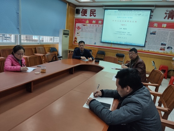 为深入贯彻落实《民法典》,积极响应桂林市司法局开展宣讲《民法典》活动的倡议,2020年11月27日下午,我所事业合伙人程进宝律师应桂林市七星房产管理处的邀请到该处作《民法典》专题讲座。 十三届全国人大三次会议表决通过了《中华人民共和国民法典》。这部法律自2021年1月1日起施行。这是新中国第一部以法典命名的法律、新中国截至目前体量最为庞大的法律,被誉为社会生活的百科全书。